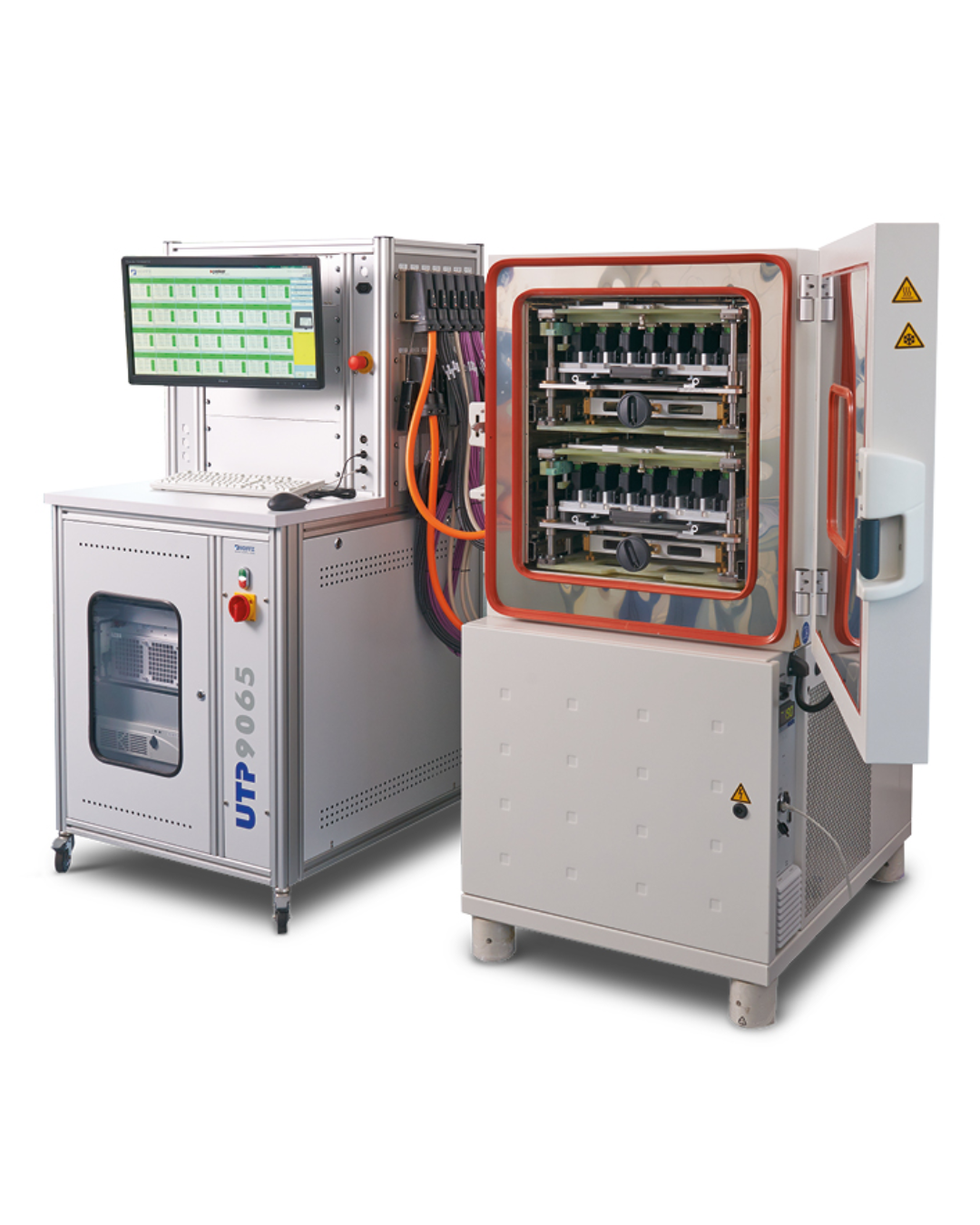 The UTP 9065 is a scalable, high-parallel test system within the NOFFZ Universal Tester Platform (UTP). It is optimized for long-duration functional testing, environmental screening, and run-in processes across a wide range of electronic assemblies.
